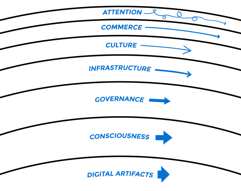 When viewed through the lens of the noosphere, the Digital Pace Layers become a digital mirror of our collective thought, structured as follows: