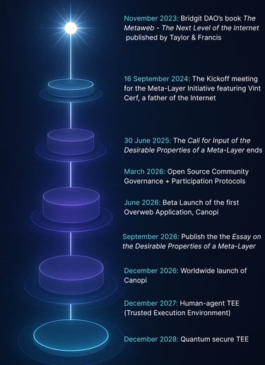 This isn’t a product roadmap. It’s a collective blueprint—shaped by working groups, expert convenings, and community input. These milestones represent key inflection points as we move from concept to implementation, from idea to interaction.